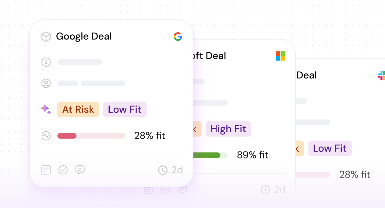 Spot risks like dropping engagement, missing stakeholders, or competitor mentions before they turn into lost deals.