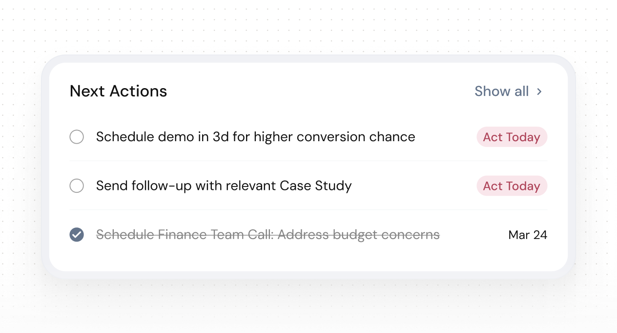 Focus the right opportunities with deals automatically classified and a clear next best action ready.