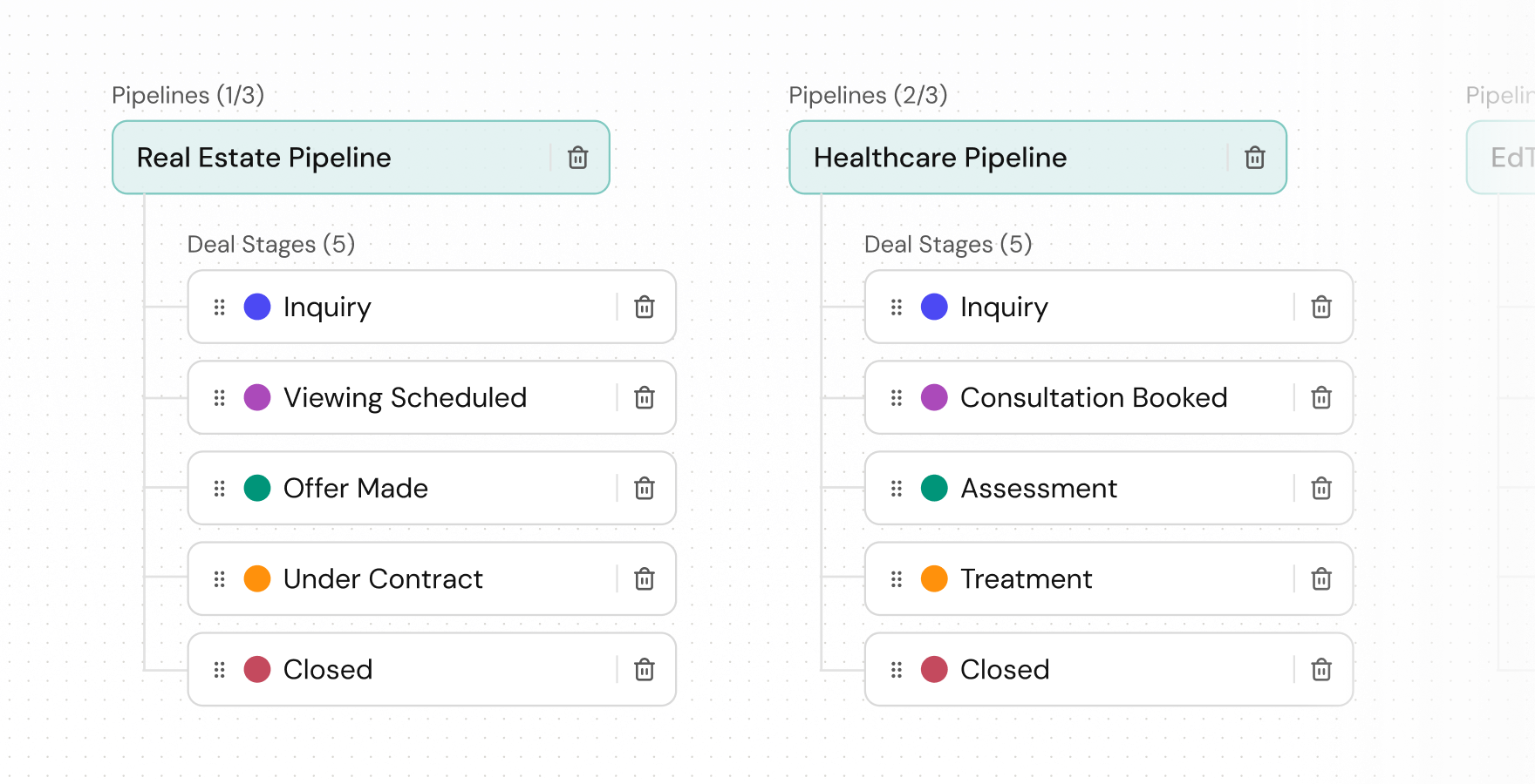 Customize pipeline stages to match your sales process, industry, or deal type,