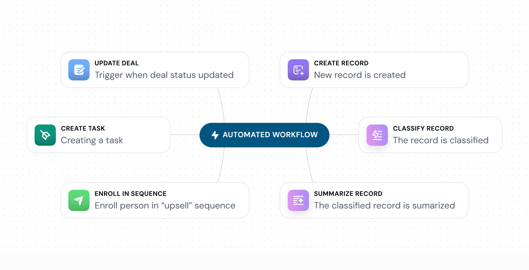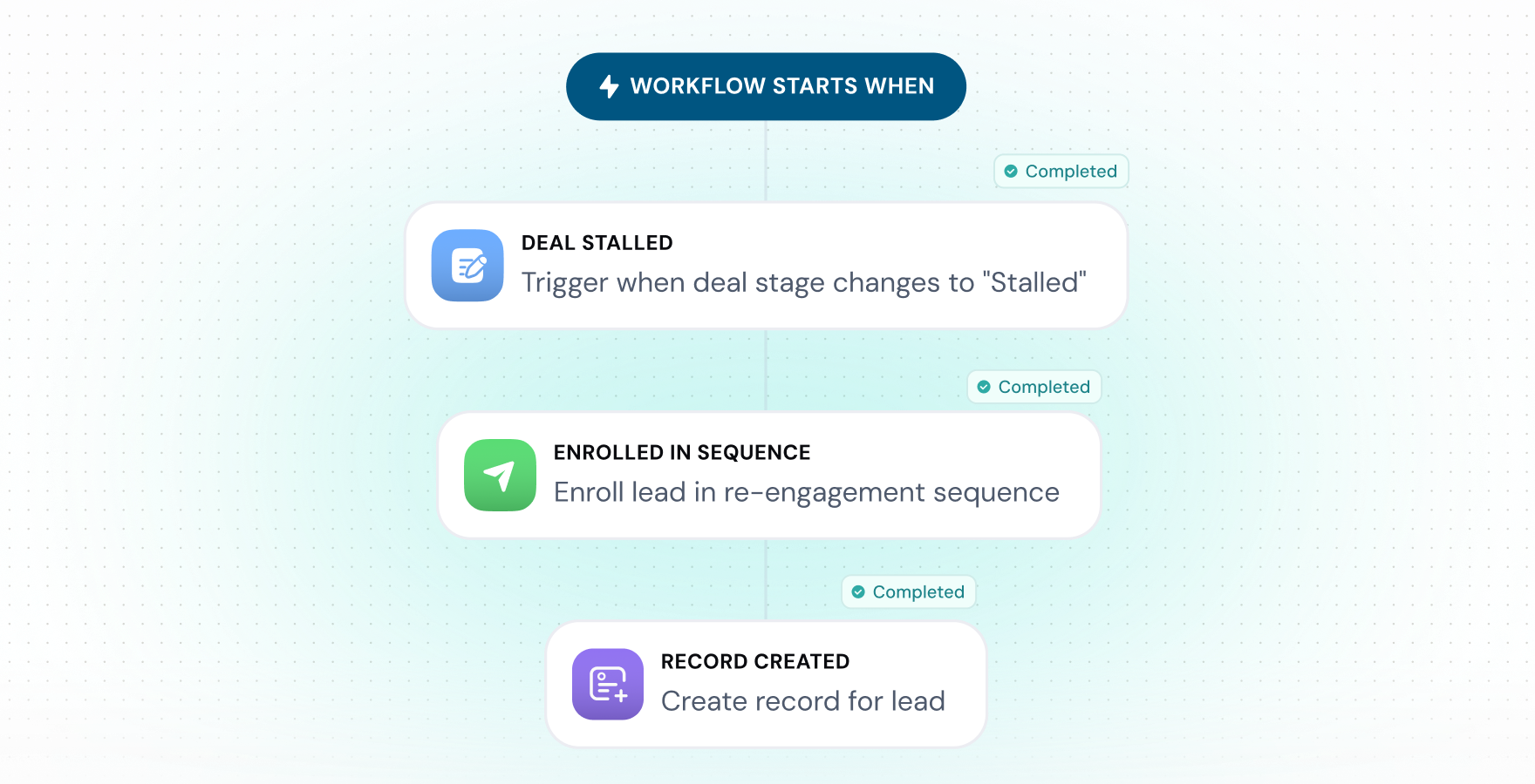 Build workflows that handle routing, handoffs, follow-ups, and updates across your pipeline - so every deal moves forward without manual effort.